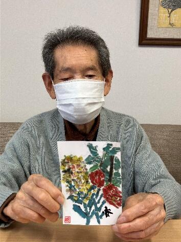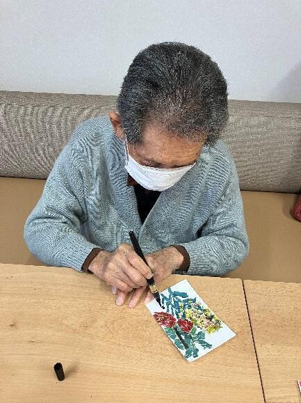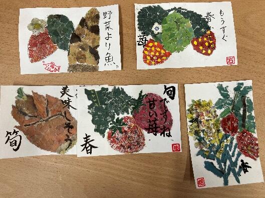 それと昨日完成まで進めることのできなかったちぎり絵絵はがきの仕上げを行いました。