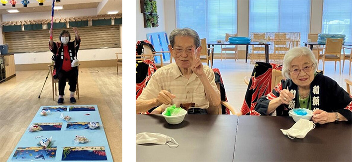 金魚すくいやヨーヨー釣り・釣りゲーム。最後の〆はかき氷!