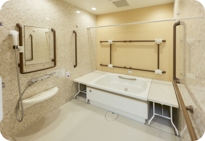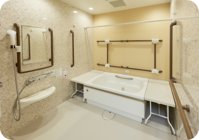 浴室は、これまでの入浴スタイルや身体状況に応じて選べます。居室には個浴室もございます。