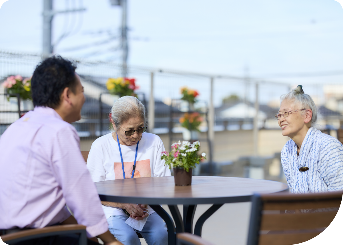 季節に合わせた花々も愉しめる、ご入居者様が集まる円樹の人気スポットです。