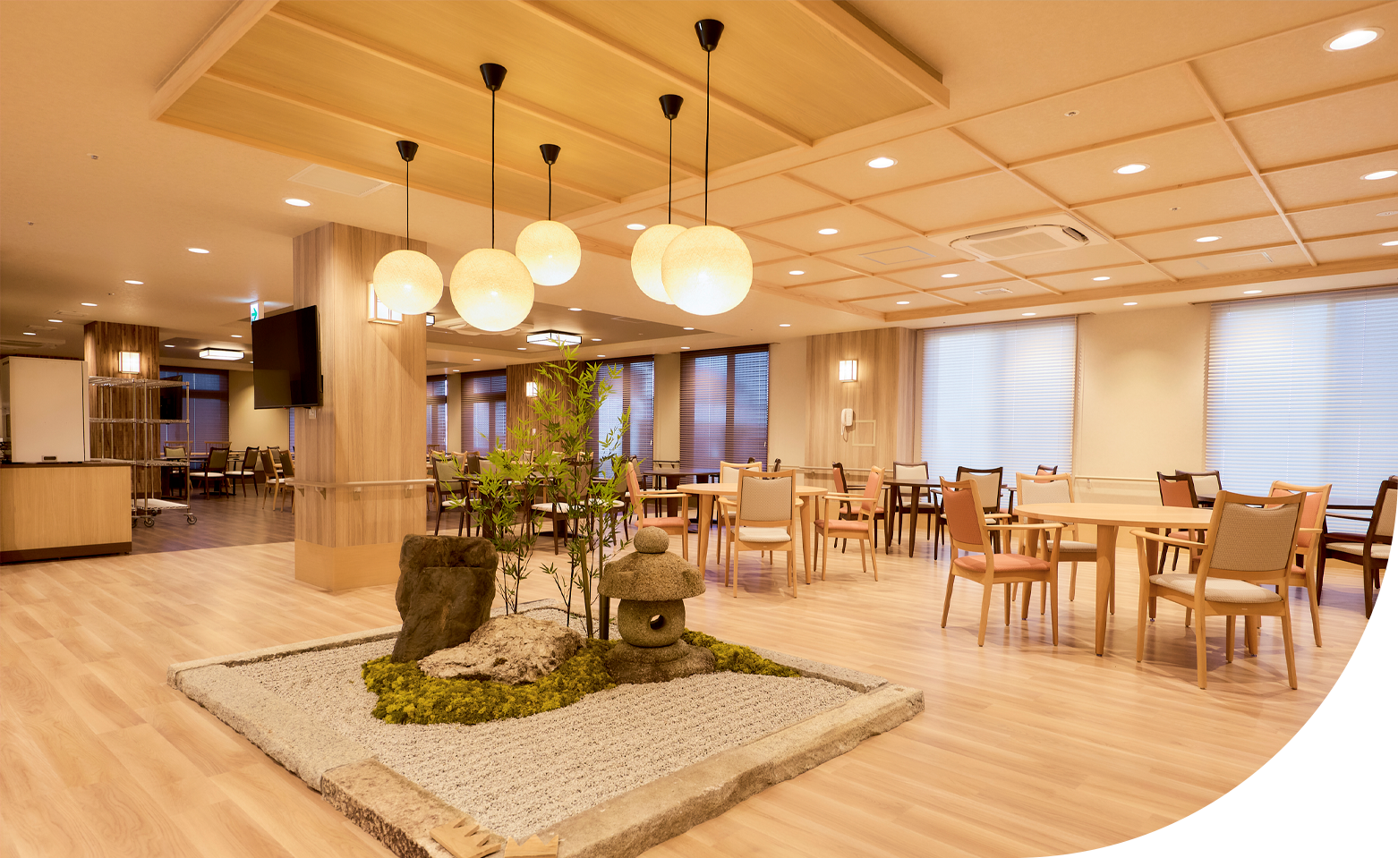 施設内の空間は“和”をコンセプトにしており、明るく温かみのある、心落ち着く空間を演出しています。