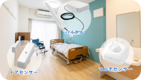 「ライブコネクト」の各種センサーで、離床・ドア開閉・トイレ通知・バイタルなど