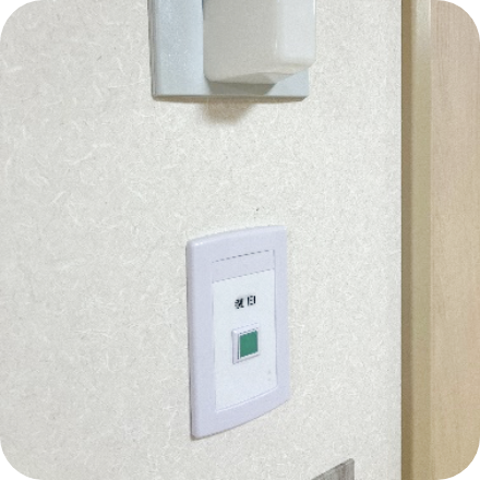 居室にはナースコールが備えられており、体調不良などの際に職員が応対し、必要に応じて駆けつけます。